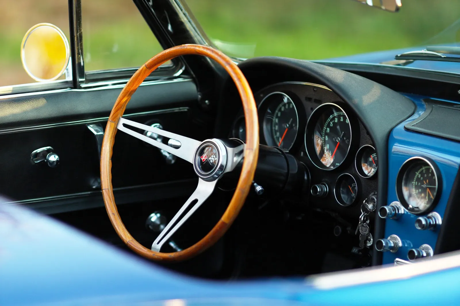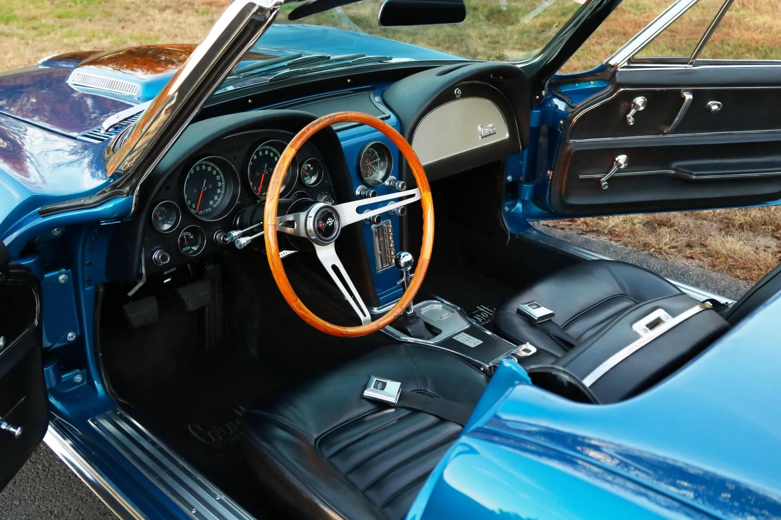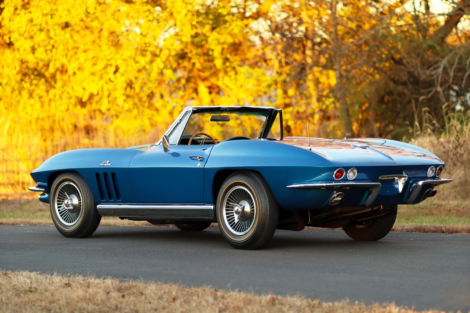 This 1966 Chevrolet Corvette Convertible is finished in metallic blue with a black soft top over matching vinyl and powered by a numbers-matching 427ci L72 V8 paired with a 4-speed manual transmission. A desirable big-block C2 Corvette with serious collector appeal and premium showroom presence.
