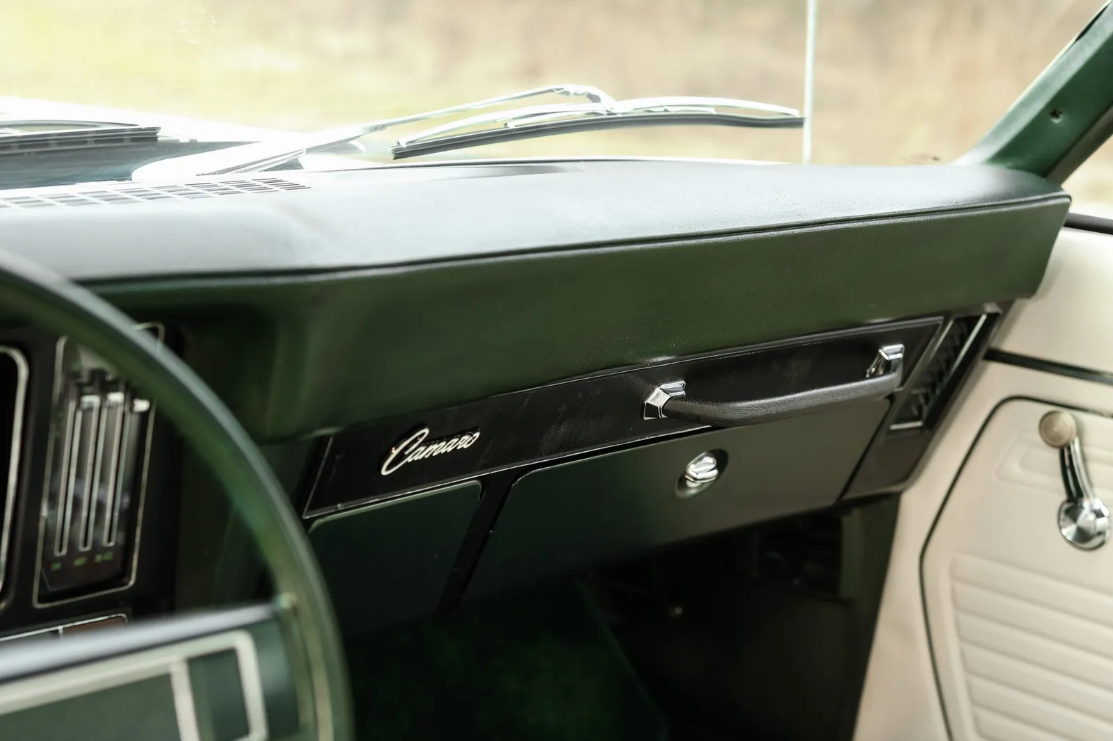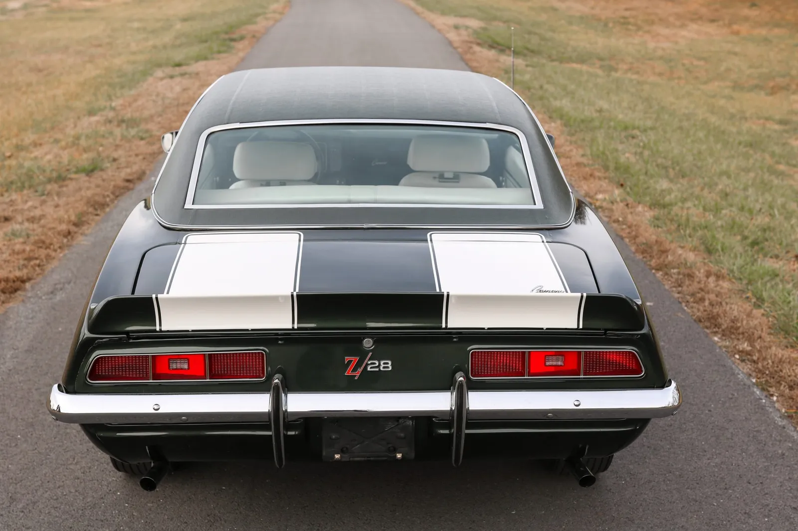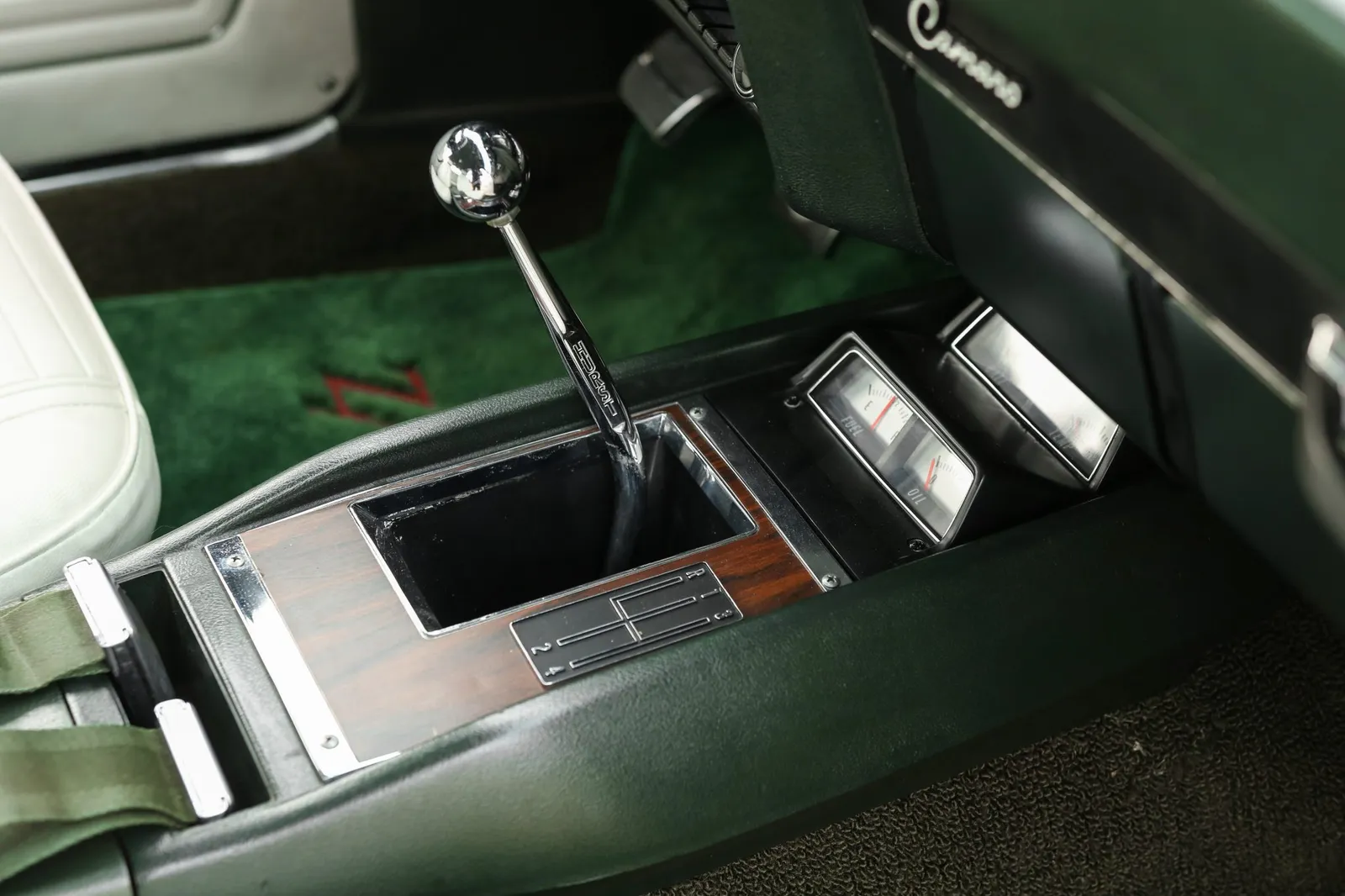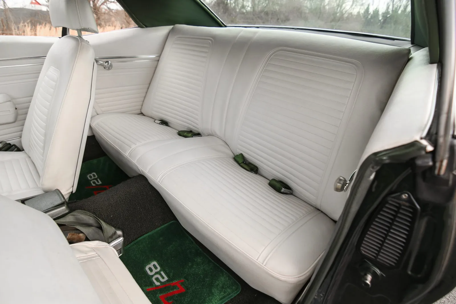 This 1969 Chevrolet Camaro Z/28 is finished in Fathom Green with white stripes over white vinyl and powered by a 302ci V8 paired with a Muncie M20 4-speed manual transmission. A highly sought-after first-generation Z/28 with strong collector appeal and authentic muscle car character.