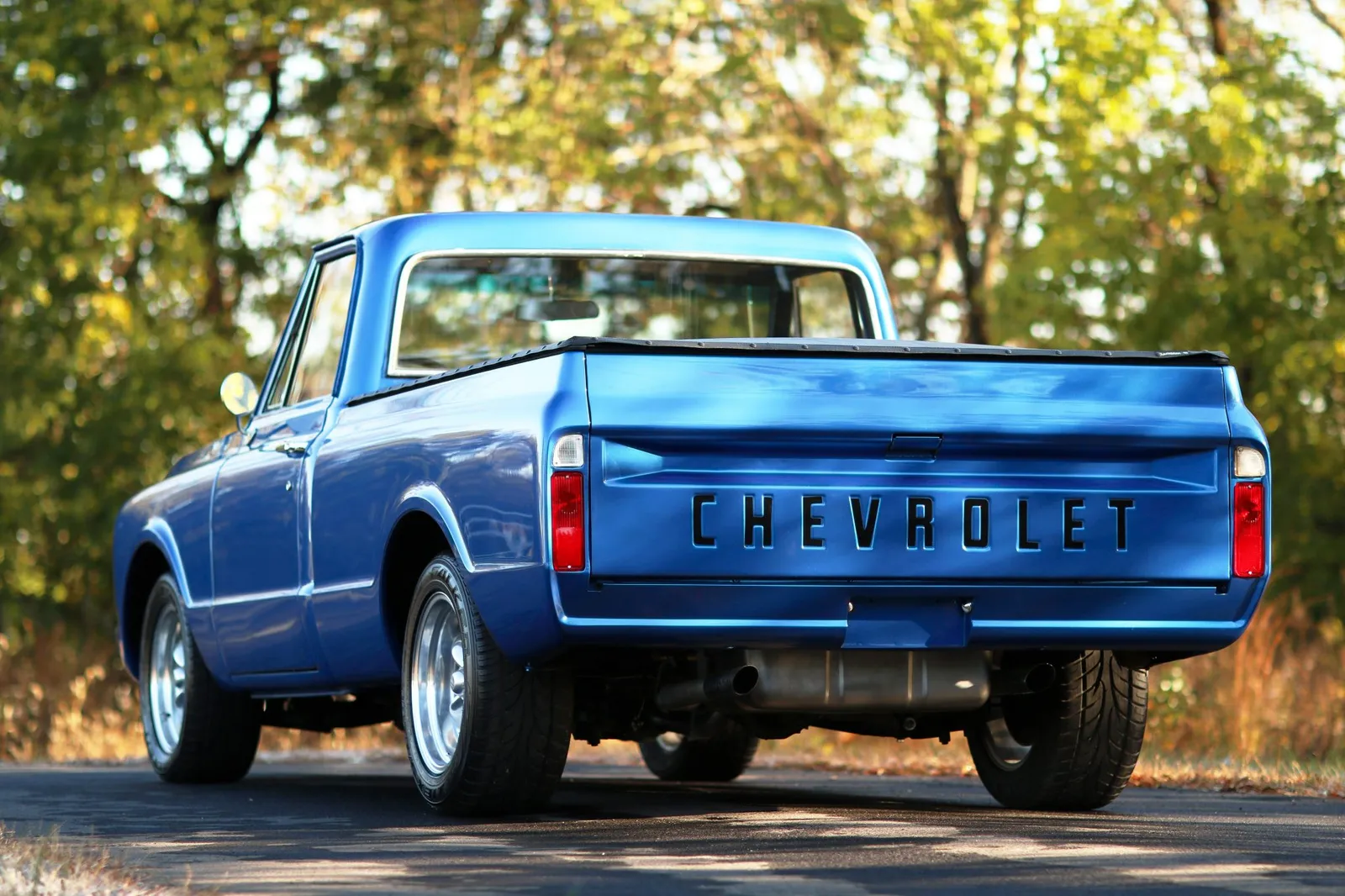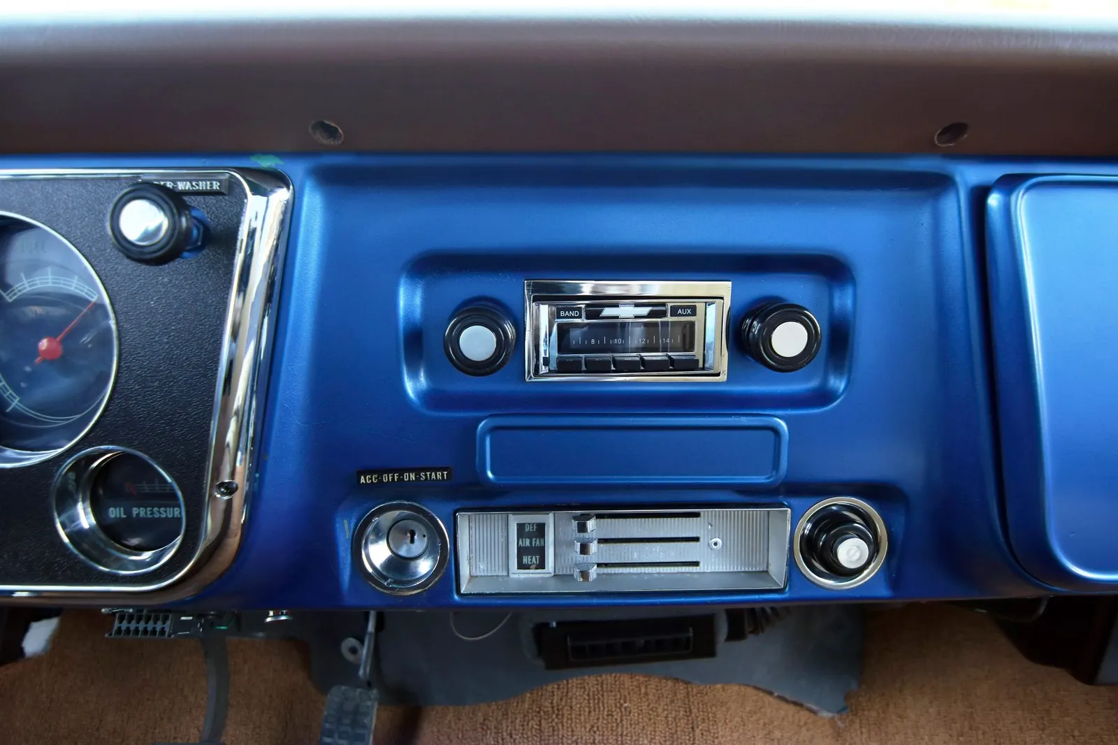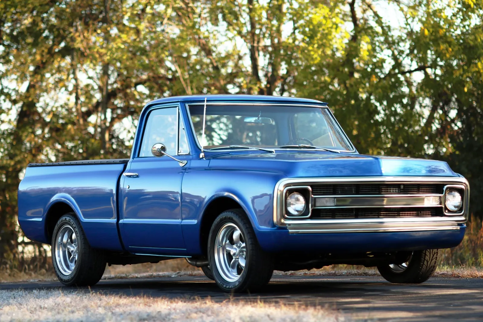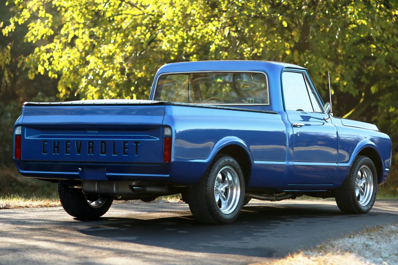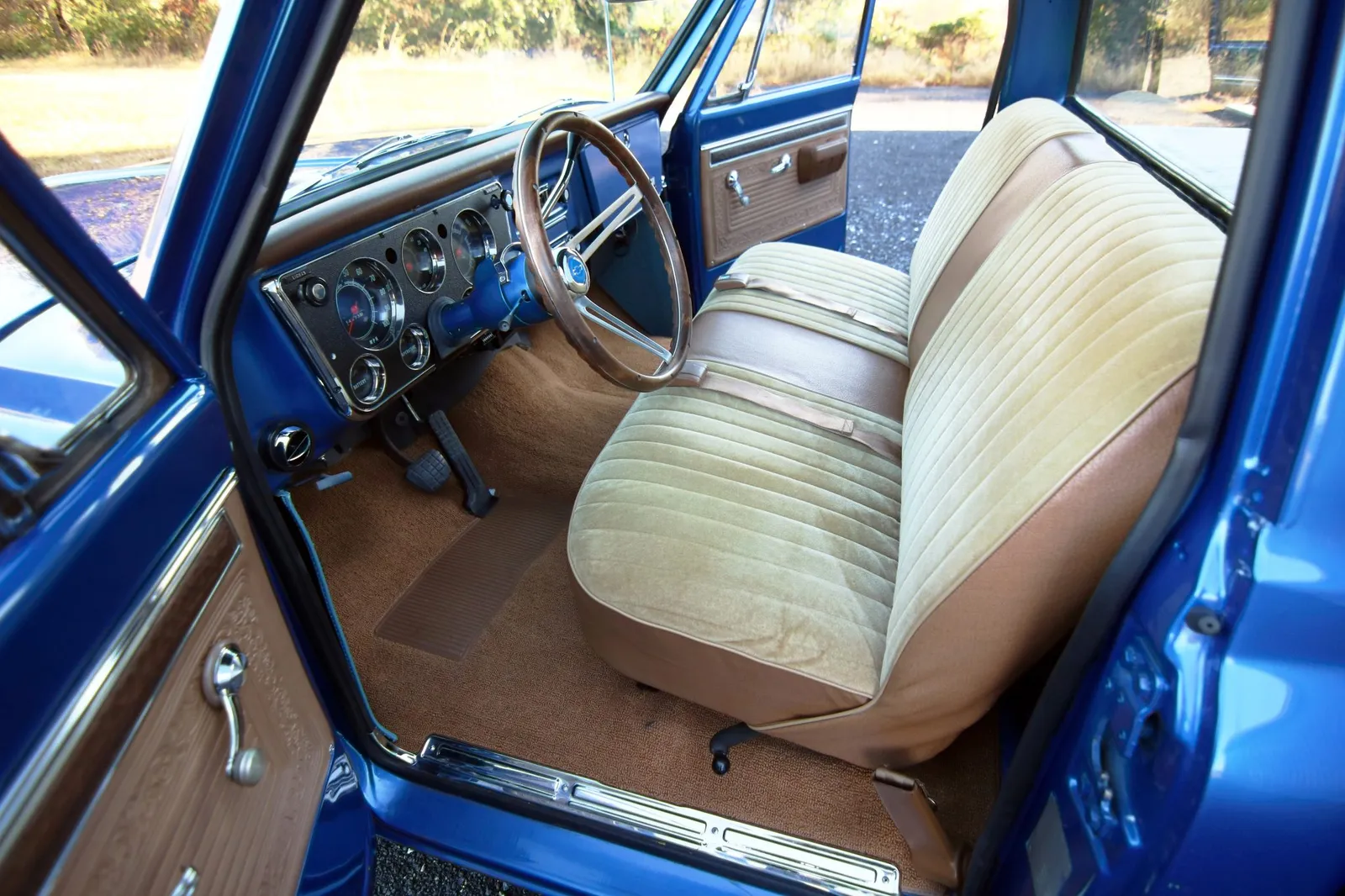 This 1970 Chevrolet C10 Pickup is finished in metallic blue over a brown and tan interior and powered by a 5.7-liter LT1 V8 paired with a 4-speed automatic transmission. Modern drivetrain upgrades and clean short-bed styling make this C10 a versatile classic truck listing.