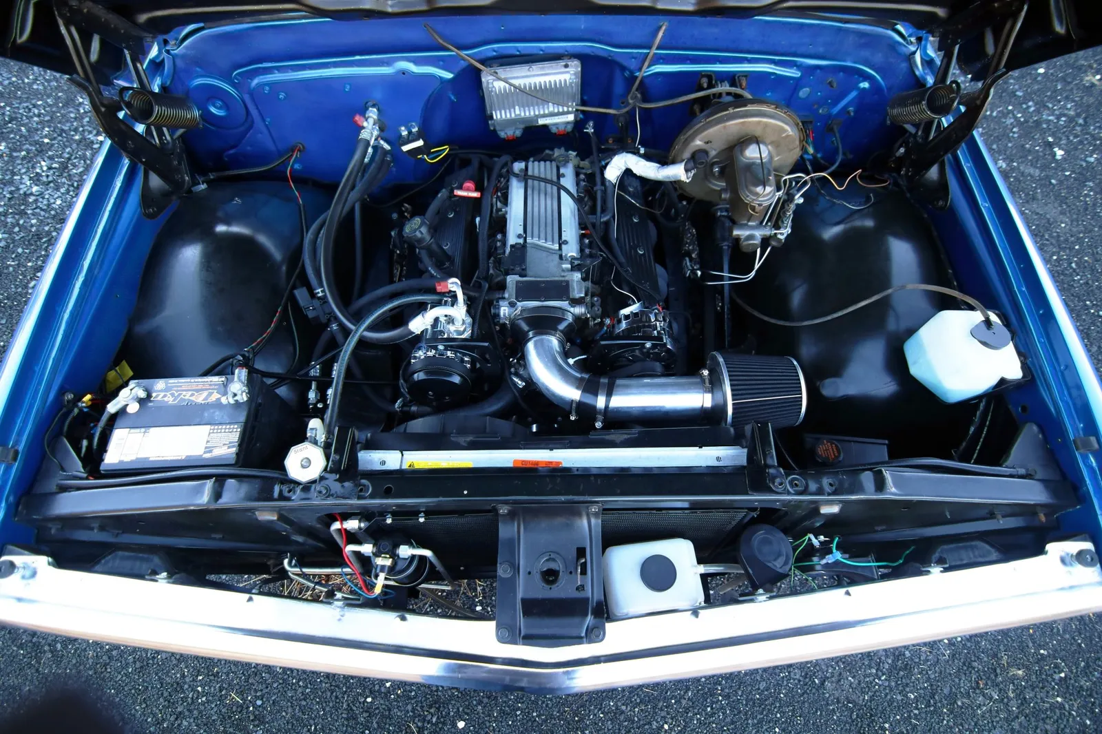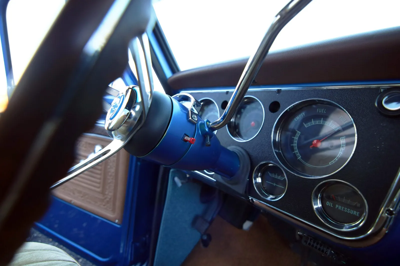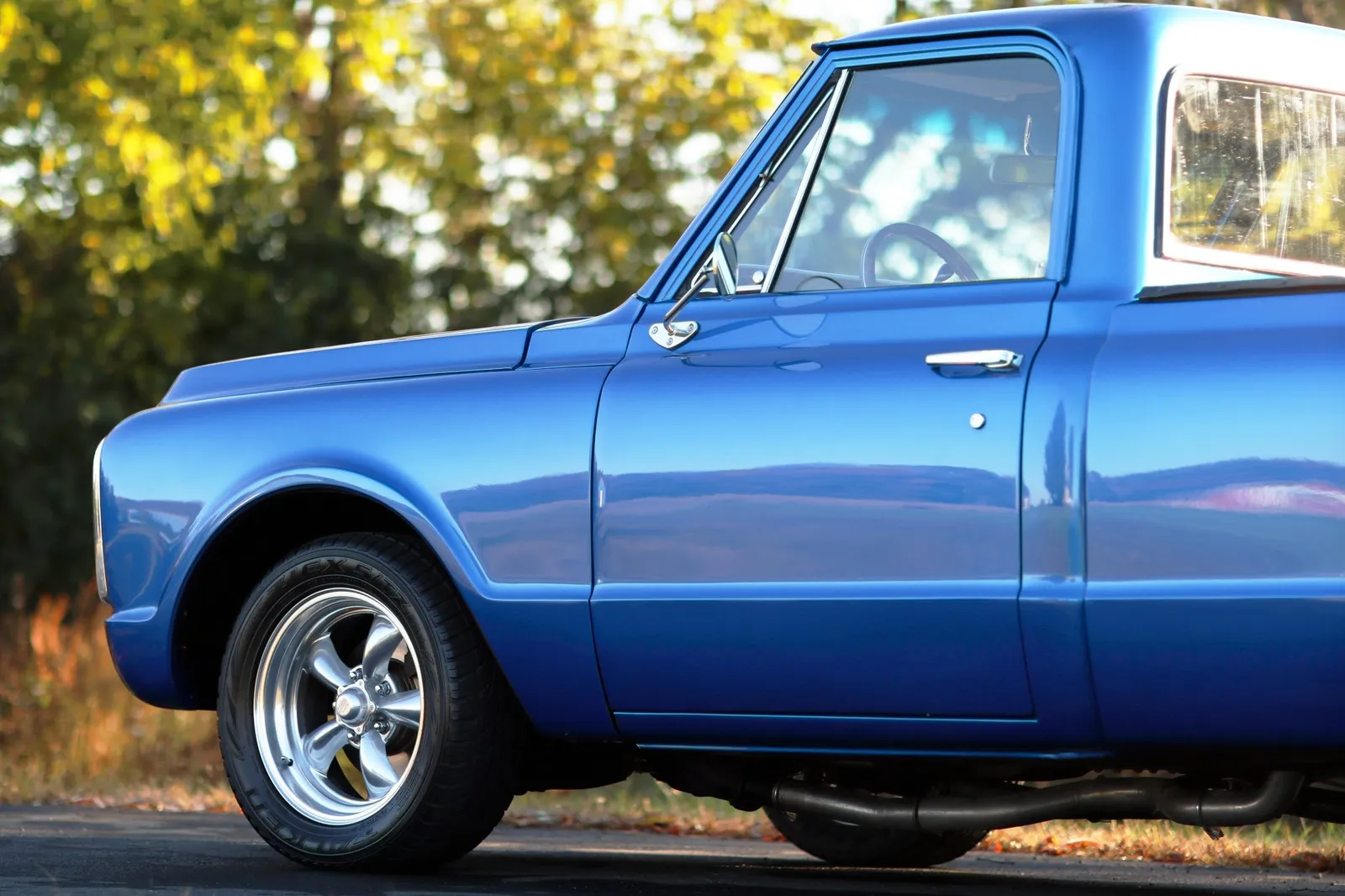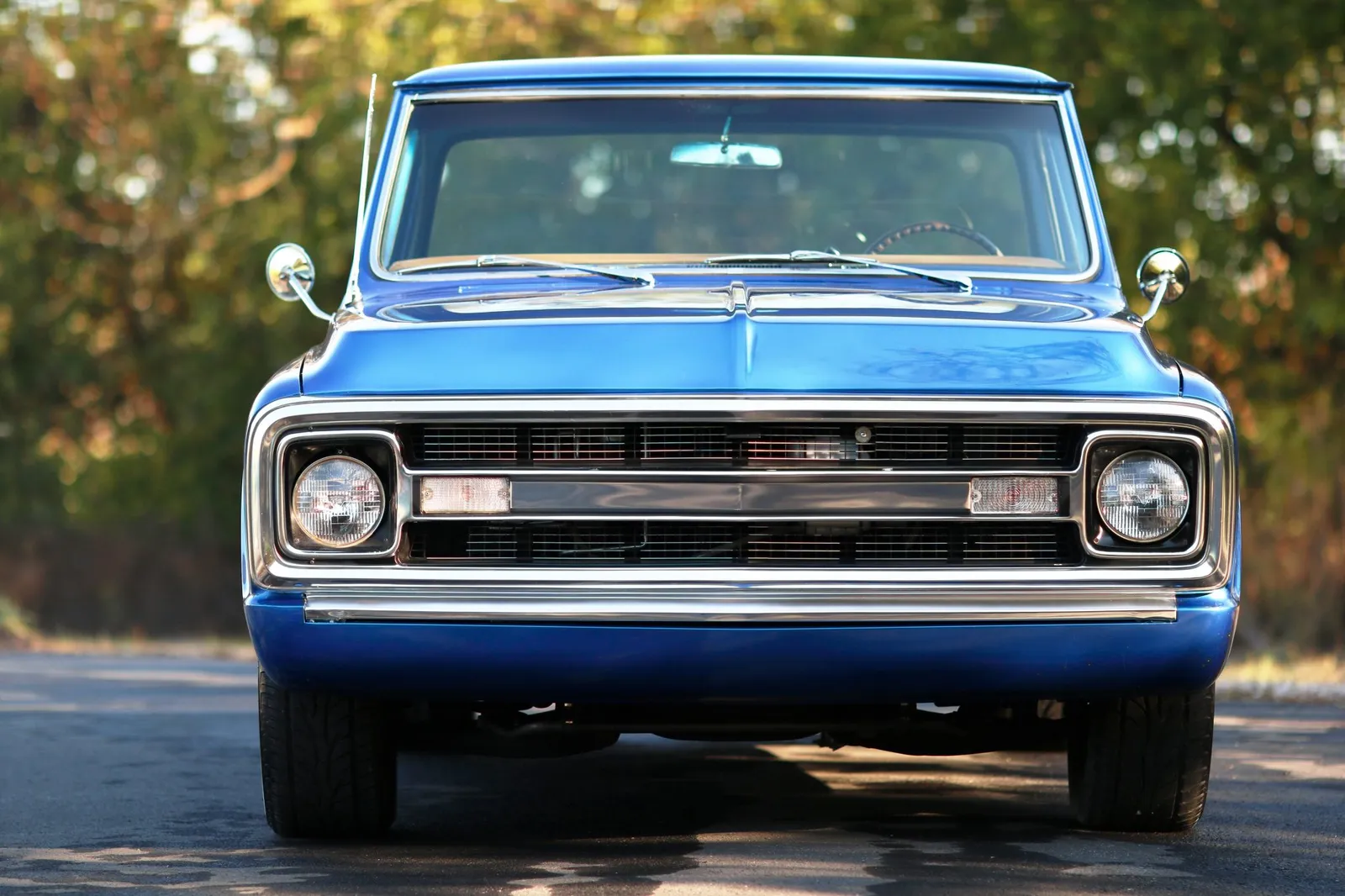 This 1970 Chevrolet C10 Pickup is finished in metallic blue over a brown and tan interior and powered by a 5.7-liter LT1 V8 paired with a 4-speed automatic transmission. Modern drivetrain upgrades and clean short-bed styling make this C10 a versatile classic truck listing.