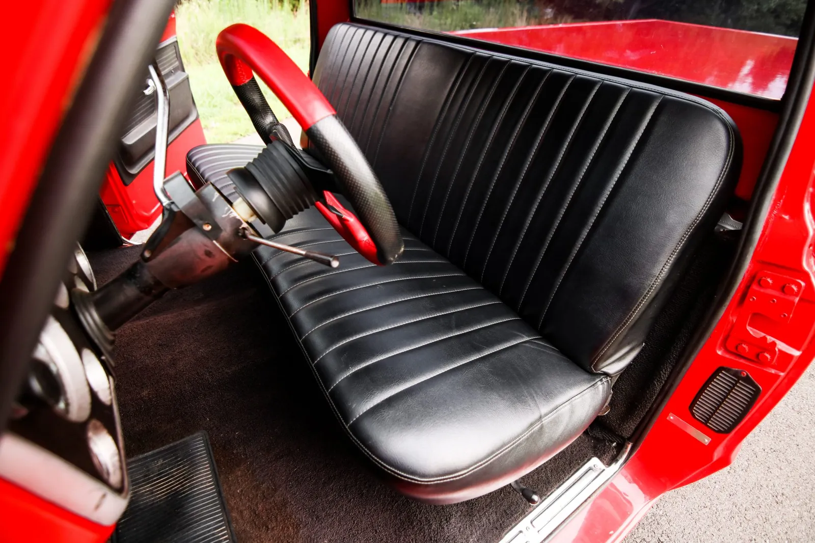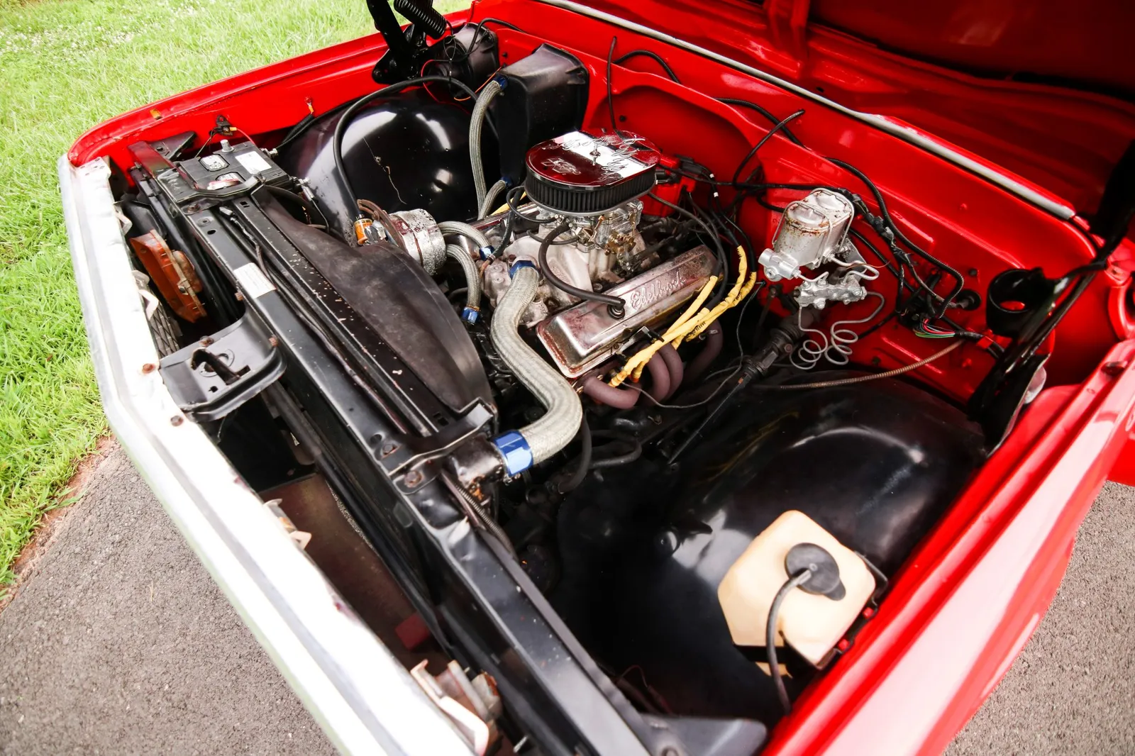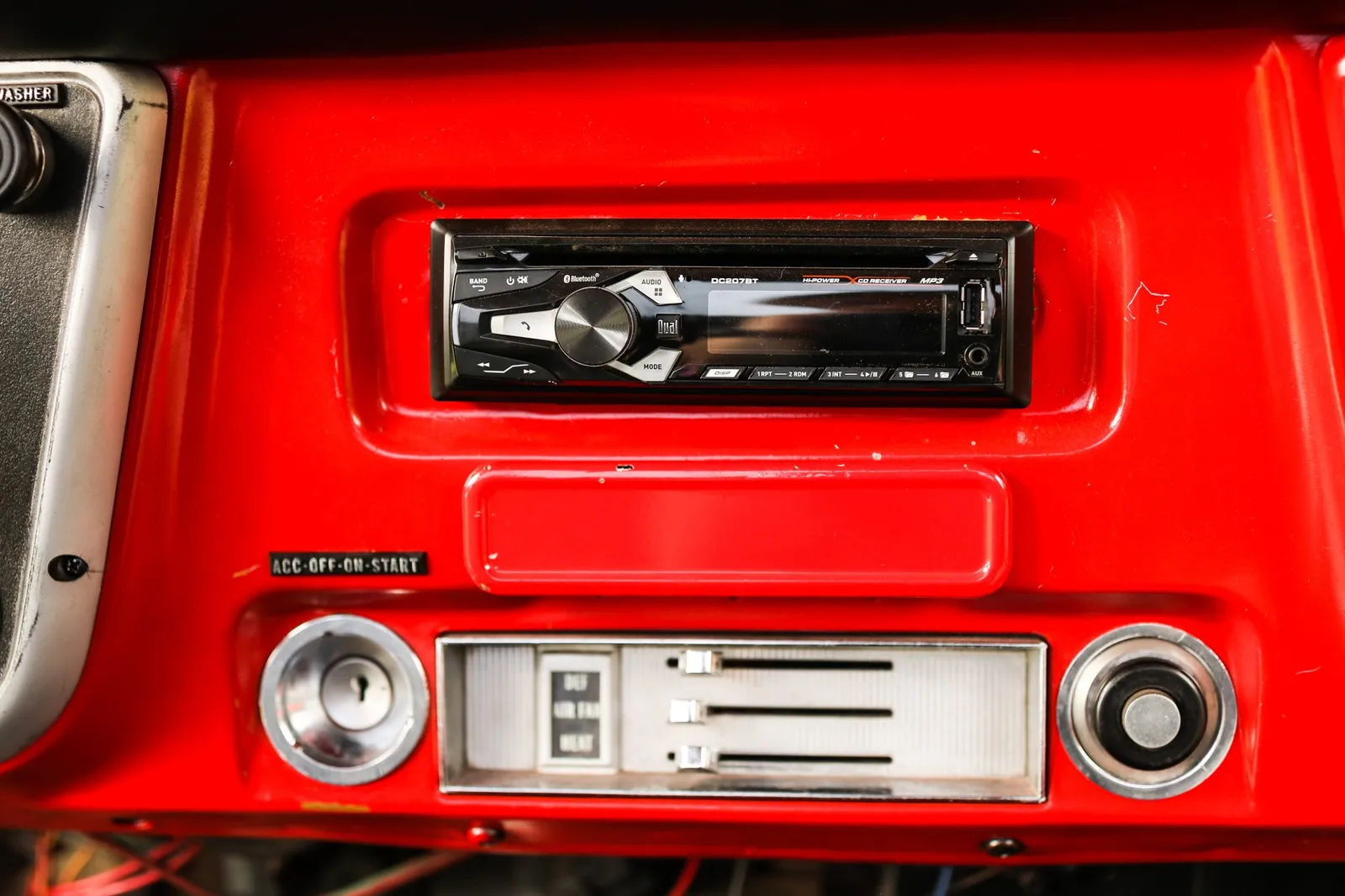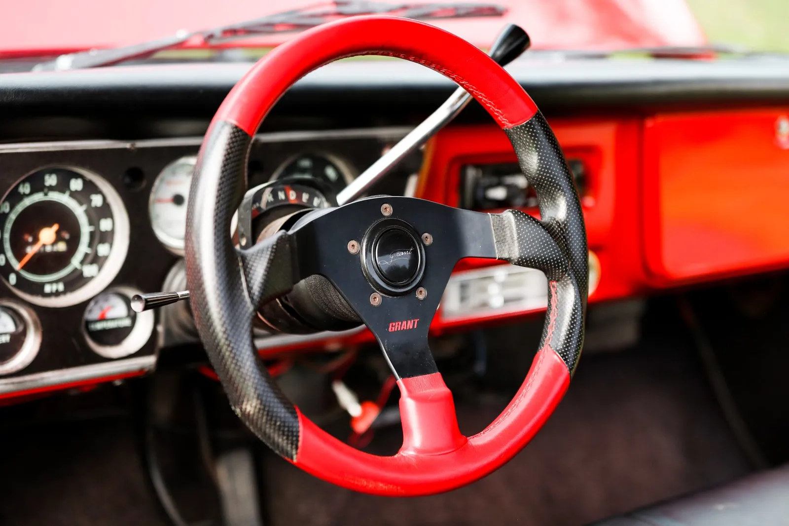 This 1972 Chevrolet C10 Pickup is finished in red with ghost flames over black vinyl and powered by a 350ci V8 paired with a 3-speed automatic transmission. A custom square-body style truck with hot rod flavor and standout visual presence for truck and classic inventory.